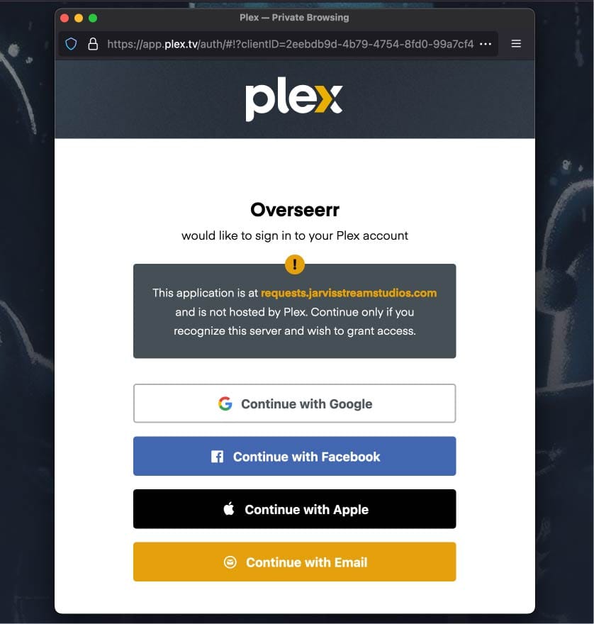 – Sign in using the same login and method you use for Plex, no new account is needed